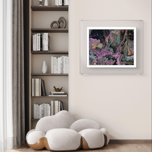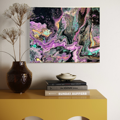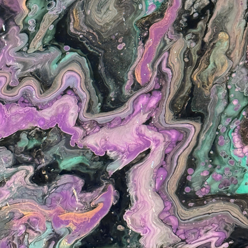 Beautiful swirling colors in a multicolor palette of purple, black, green, silver, yellow and gold.