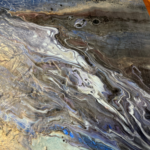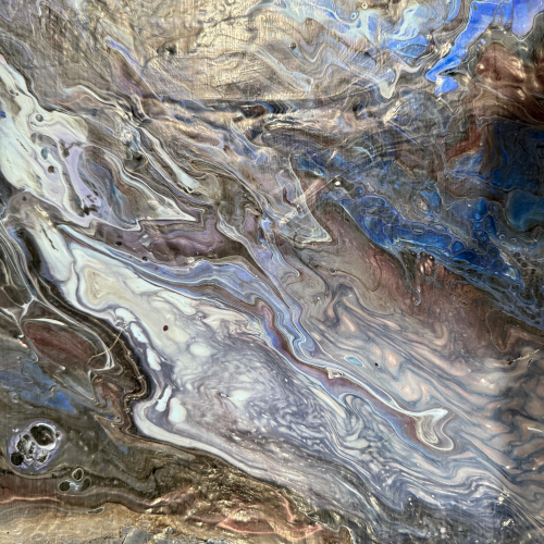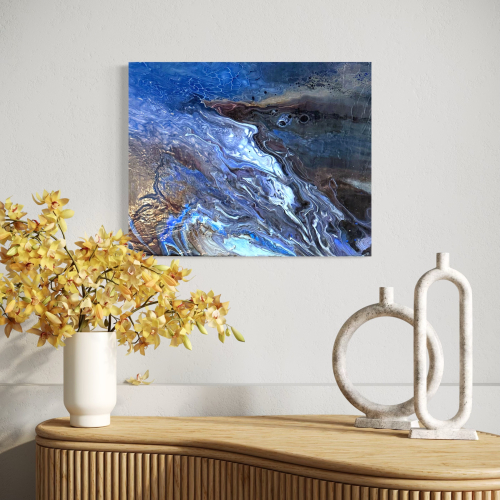 A mesmerizing blend of blues and whites, evoking the movement of water through cosmic landscapes.